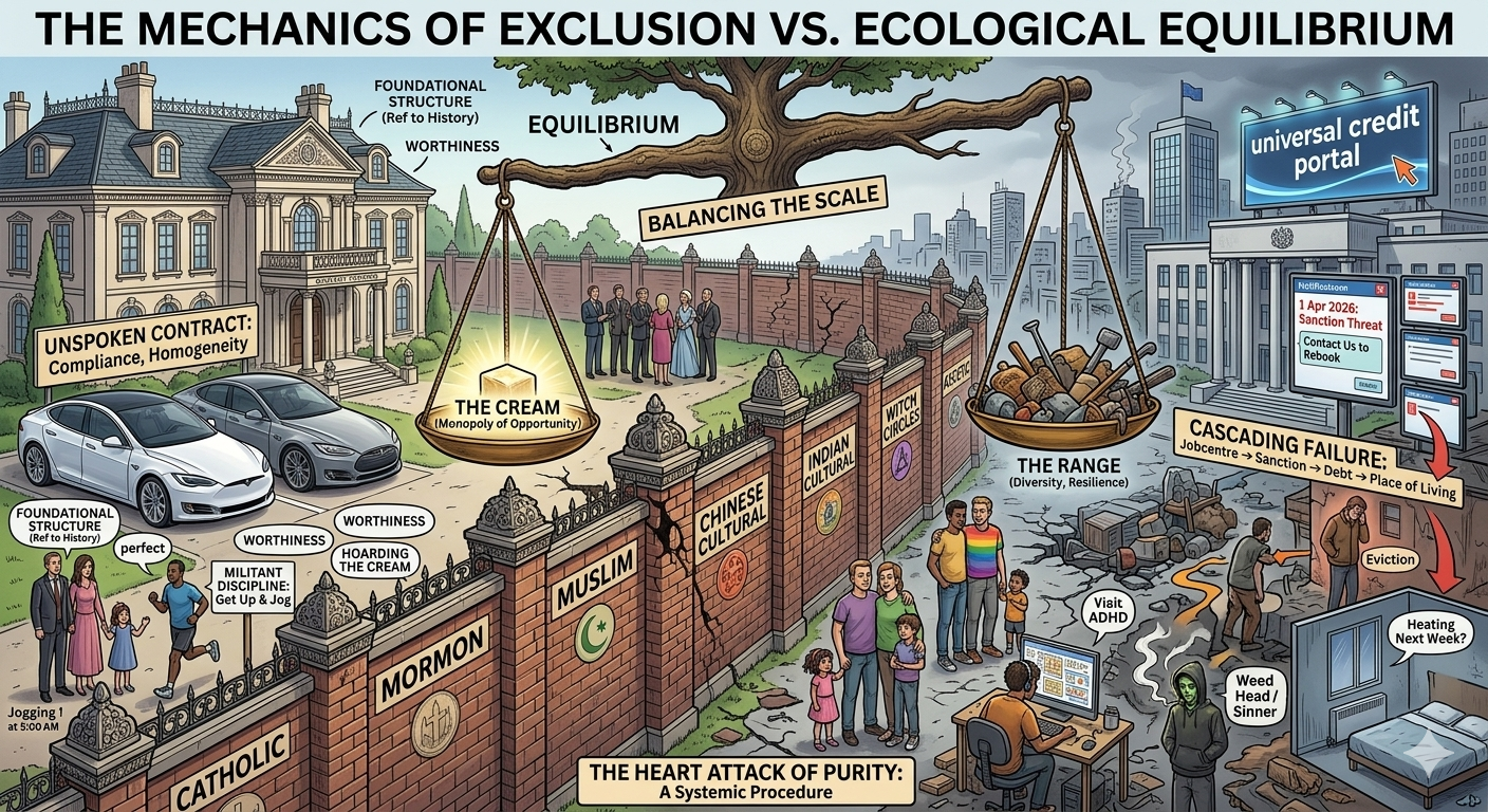 A structured analysis of exclusionary logic, unspoken contracts, and the conditions that lead closed groups to undermine themselves.
