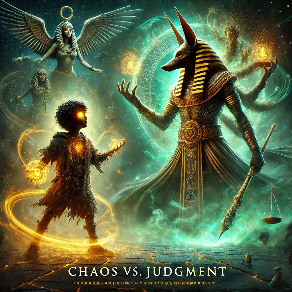 • Order vs. Chaos: Anubis represents the cosmic order, while Rumpelstiltskin embodies the chaos of human greed and fear.