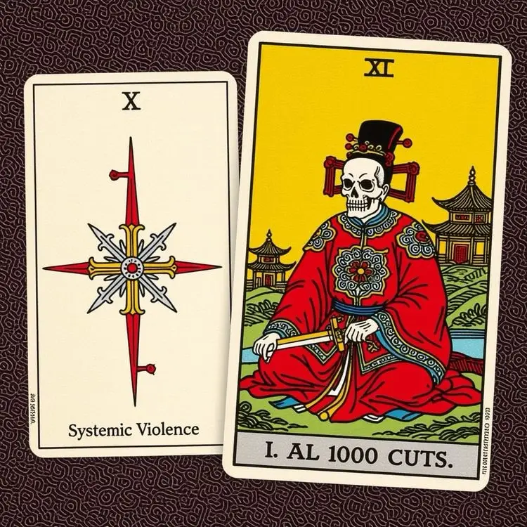 The term lingchi (凌遲) refers to an ancient Chinese execution method known as “death by a thousand cuts” or “slow slicing.” Each individual cut was minor, but their cumulative effect was fatal. The method was designed to maximize suffering while prolonging the process.